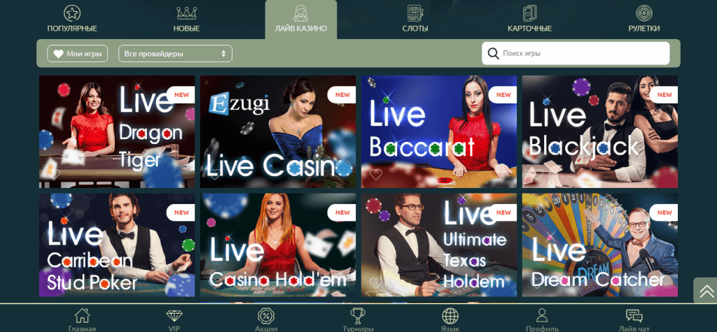 Насладитесь атмосферой настоящего казино, не выходя из дома! Но помните, эта категория доступна только для зарегистрированных пользователей с положительным денежным балансом.