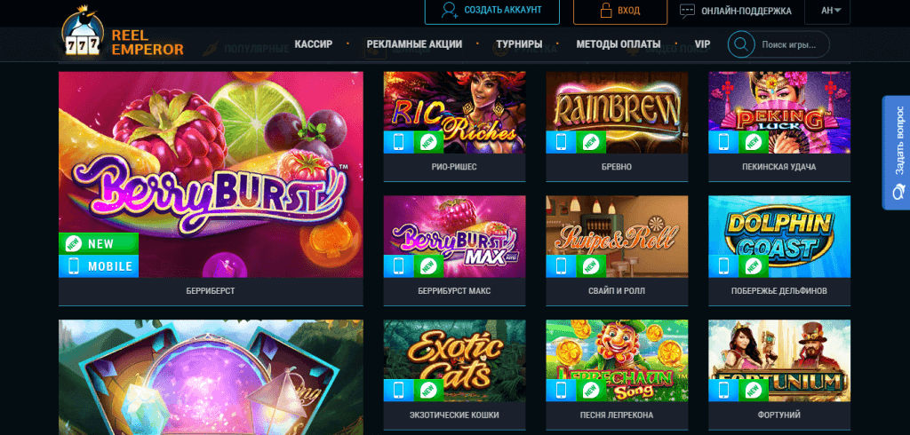 ReelEmperor Casino использует софт от одного из самых крупных, надежных и популярных разработчиков программного обеспечения – Microgaming. Все игры можно запускать без скачивания, прямо в браузере. Большинство развлечений доступны для использования на современных портативных устройствах. На их иконках расположен специальный значок в виде смартфона.
