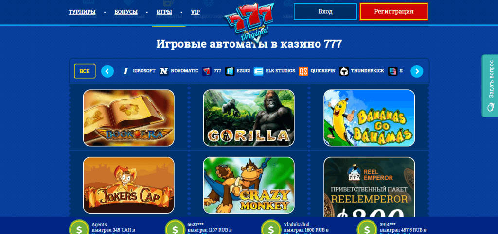 Популярное русскоязычное казино Вулкан Оригинал пользуется наибольшим спросом из всей серии Вулканов. Этому способствуют интересный дизайн сайта, шикарная бонусная программа (в том числе бесплатные 40 долларов за регистрацию), множество интересных поощрений и профессиональная служба поддержки.