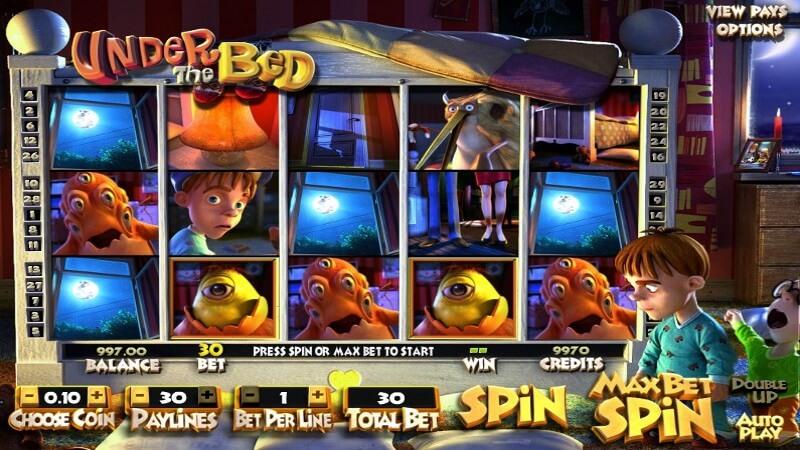 Английская компания БетСофт Гейминг представила слот Под Кроватью. В нём собрана целая коллекция ночных кошмаров. Полночь, спальня, двое детей застыли у кровати с фонариком – вот, что увидит игрок, впервые открыв Under the Bed.