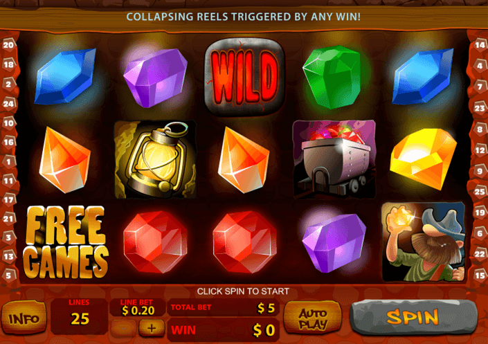 Более динамичным игровой процесс в слоте делает анимация. Во время розыгрышей камни будут подсвечиваться, переливаться, а также взрываться и рассыпаться. А забавный шахтер в паузах между спинами будет выплясывать на барабанах, поднимая игроку настроение. Игра будет сопровождаться веселыми мелодиями и характерными для подземелья звуками.