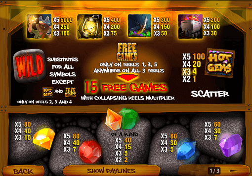 Игровой автомат Hot Gems позволит побывать в шахте и найти там множество драгоценностей. Сюжет слота воплощен с помощью красочной качественной графики и анимационных эффектов. Игра сможет порадовать геймеров возможностями особых знаков, оригинальной функцией взрывающихся барабанов, раундом фриспинов.