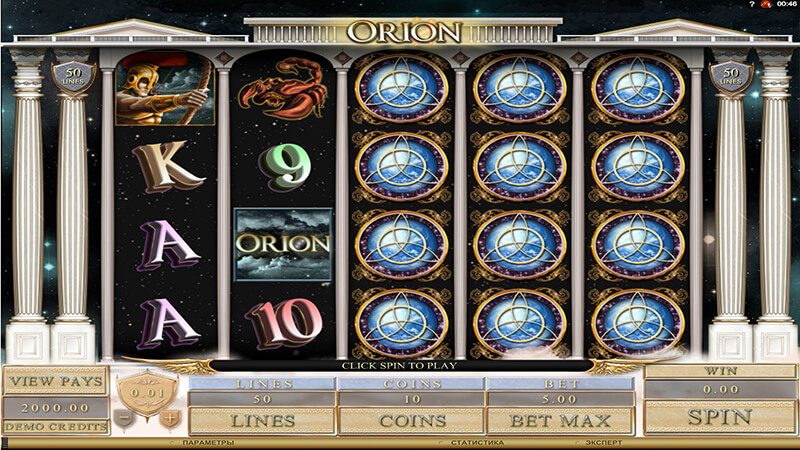 Genesis Gaming использовала для своего автомата легенду о древнегреческом охотнике Орионе. Он был любимцем богов. Удача повсюду сопутствовала ему. В честь Ориона названо одно из созвездий в Северном полушарии, которое хорошо видно в ясную летнюю ночь.