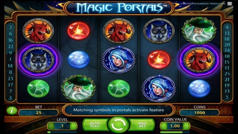 Magic Portals – пятибарабанный видеослот с 25 активными игровыми линиями, отличается сбалансированным набором настроек и функций.