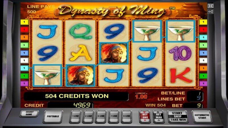 Видеослот The Ming Dynasty – модифицированный однорукий бандит, работающий на платформе Novomatic. Простой интерфейс и классическая панель управления помогают игроку управлять процессом на интуитивном уровне. Вся необходимая информация о состоянии счета, количестве активных линий и сумме ставки показаны на цифровых ячейках на пульте управления.