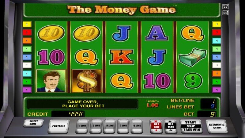 The Money Game – уникальное предложение от опытного создателя увлекательных игр Novomatic. Видеослот представлен пятью барабанами и девятью линиями выплат, которые можно активировать во время игрового процесса. На каждую линию можно сделать ставку в диапазоне от одного до ста кредитов. Соответственно, максимальная ставка на одно вращение может быть достаточно внушительной – 900 кредитов. Соответственно, и награда в случае составления выигрышной комбинации будет более чем внушительной. Призовыми считаются все комбинации от двух и более одинаковых картинок. Единственное уточнение – комбинация должна обязательно начинаться от первого слева барабана.