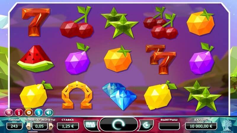 В игровом автомате отсутствуют дикий символ и бонусная игра. Но сдвоенные картинки, бесплатные вращения и сумасшедшие множители, которые доходят до ×25 000, позволяют не замечать отсутствия бонусов.
